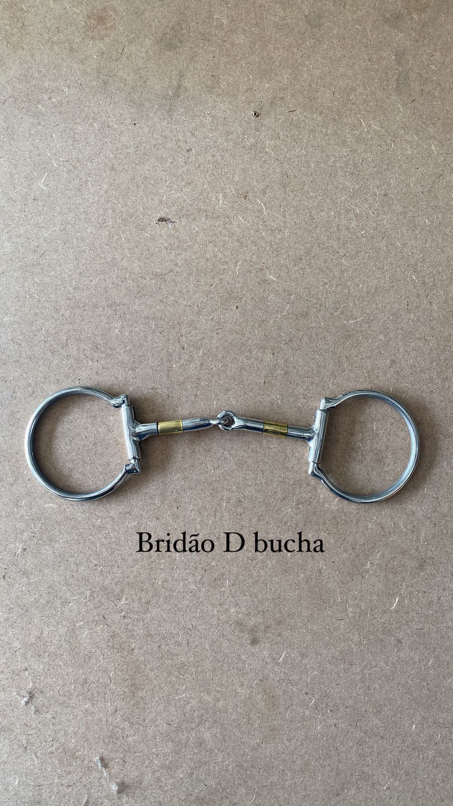 Bridão D com Salivador, argolas fabricadas em aço inox articuladas de altíssima qualidade nas laterais, livre de ferrugens. Bocal inox com articulação central e salivadores. Produto resistente, prático e de fácil fixação no animal.