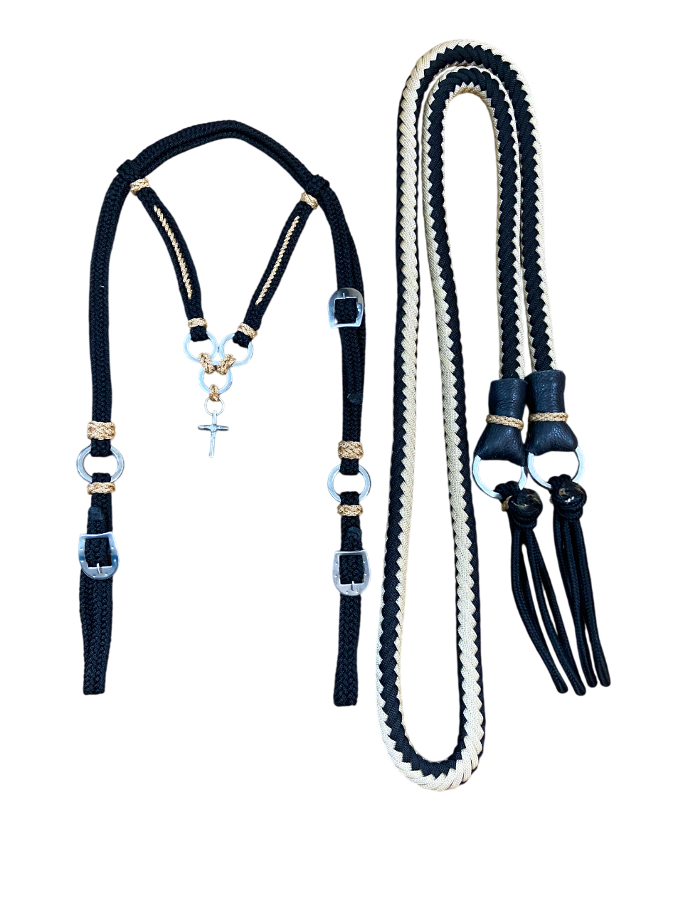 Conjunto sofisticado e funcional, ideal para quem busca elegância, resistência e conforto no manejo do cavalo. Confeccionado em cordinha trançada de alta qualidade, na cor bege, este kit une acabamento artesanal e design refinado, valorizando cada detalhe.
