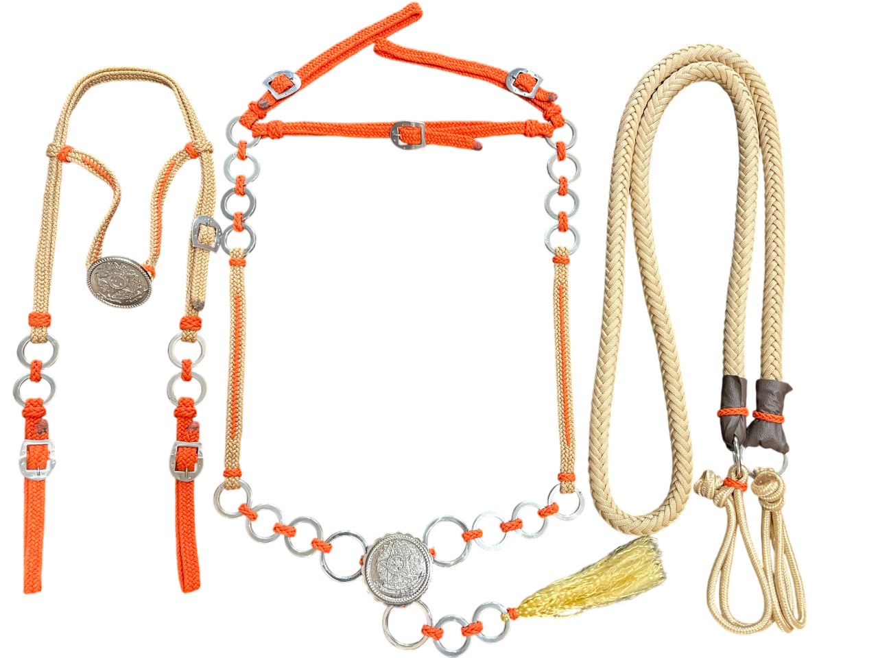 Cabeçada produzida em corda poli extra macia, possui argolas e fivelas de coração em inox livre de ferrugem