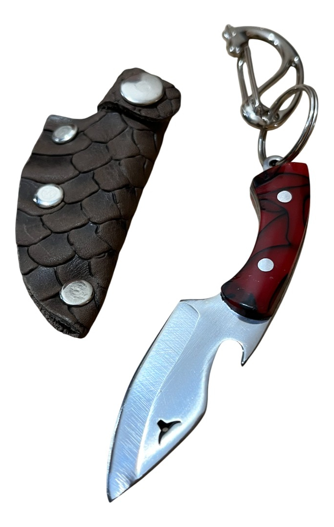Seu cabo em acrílico confere um visual moderno e confortável ao toque, enquanto a bainha em couro oferece proteção e um toque rústico de sofisticação. Compacto e leve, é o companheiro ideal para levar no bolso, na mochila ou junto às chaves.