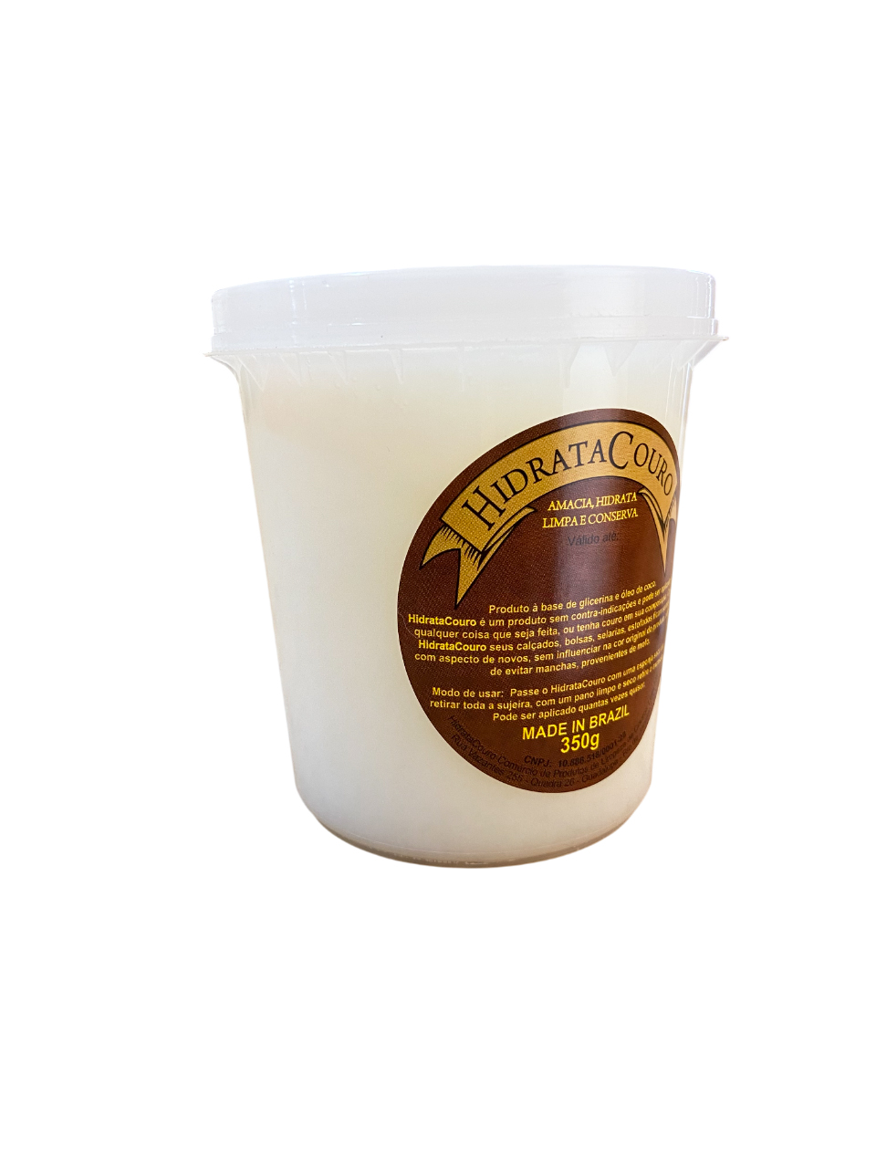 Hidrata Couros de 350g é um Hidratante de couros que pode ser aplicado em qualquer produto que seja em couro legítimo. O Produto hidrata, amacia, limpa e conserva produtos como : Calçados, bolsas, estofados que ficam sempre com aspecto de novo sem influenciar na cor original do produto, além de evitar manchas provenientes de mofo.