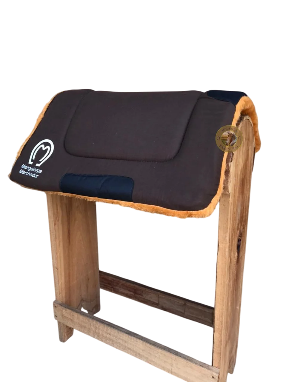 Revestida internamente com espuma de alta densidade e feltro, com 5 centímetros de espessura, absorve impacto, proporcionando maior conforto para o cavaleiro ou amazona e para o animal