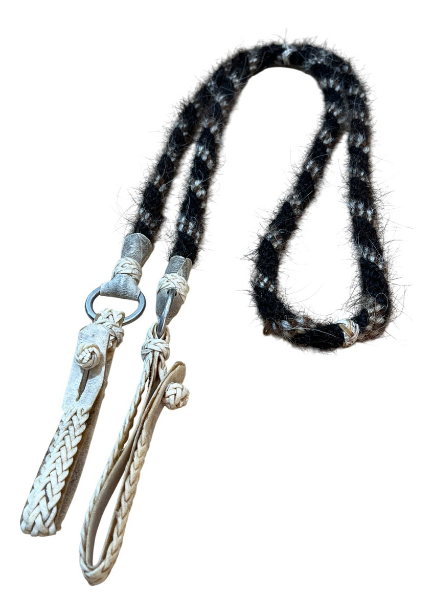 Confeccionada artesanalmente, esta rédea combina resistência, leveza e um visual rústico e elegante. Trançada em crina natural — reconhecida por sua durabilidade e flexibilidade — ela proporciona excelente sensibilidade e controle ao cavaleiro. As biqueiras em couro cru reforçam as extremidades, garantindo maior segurança e um acabamento tradicional que valoriza o estilo campeiro.